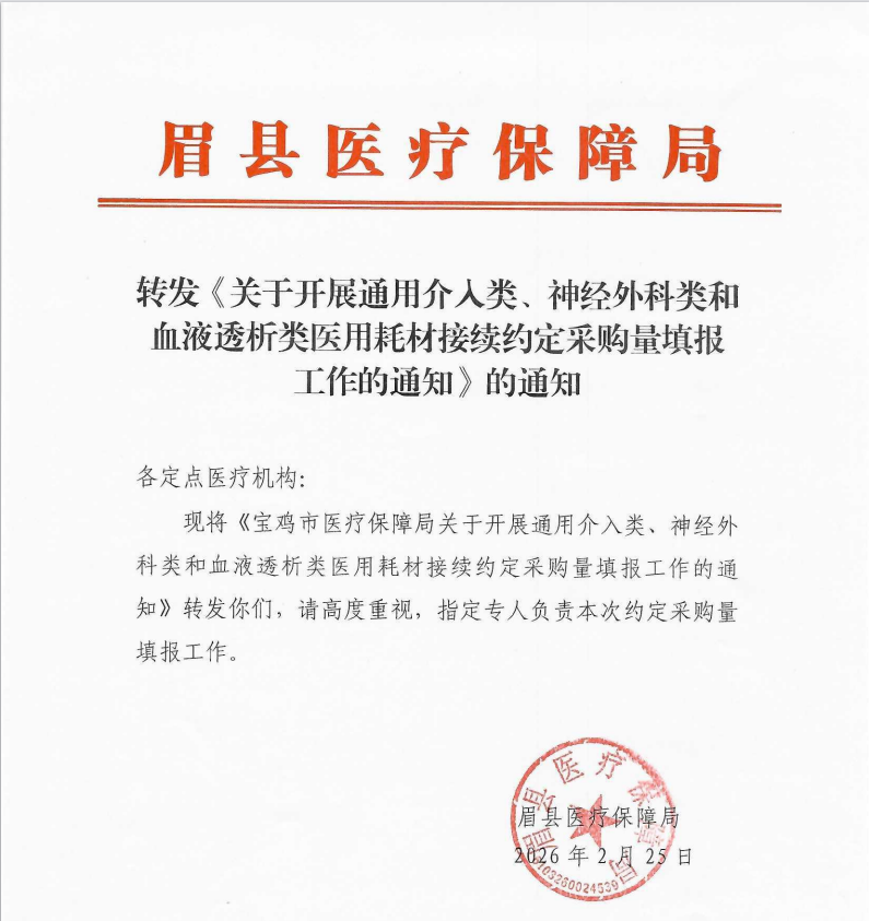 轉(zhuǎn)發(fā)《關于開展通用介入類、神經(jīng)外科類和血液透析類醫(yī)用耗材接續(xù)約定采購量填報工作的通知》的通知