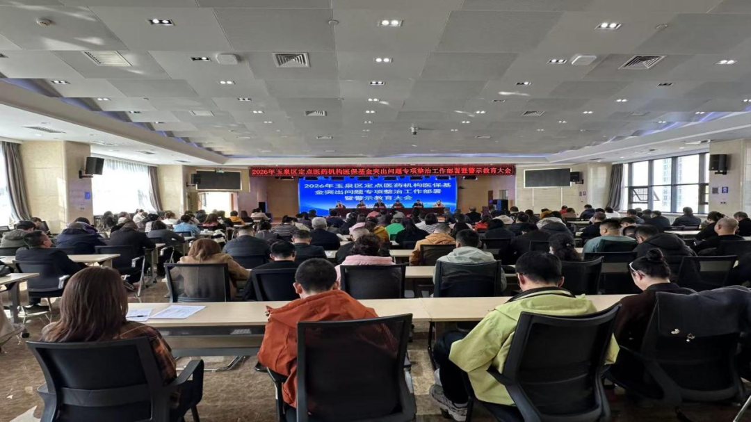 ??? 為深入貫徹落實(shí)上級(jí)部門關(guān)于醫(yī)保基金監(jiān)管工作的決策部署,進(jìn)一步規(guī)范全區(qū)醫(yī)療保障基金使用管理,嚴(yán)厲打擊醫(yī)保基金違法違規(guī)使用行為,筑牢醫(yī)保基金安全防線,強(qiáng)化行業(yè)自律意識(shí),提升風(fēng)險(xiǎn)防范能力。3月10日,玉泉區(qū)醫(yī)療保障局召開2026年度醫(yī)?;鹜怀鰡栴}專項(xiàng)整治工作部署暨警示教育大會(huì),區(qū)醫(yī)保局、衛(wèi)健委、市場(chǎng)監(jiān)管局等相關(guān)部門負(fù)責(zé)人,轄區(qū)內(nèi)一級(jí)定點(diǎn)醫(yī)療機(jī)構(gòu)、零售藥店主要負(fù)責(zé)人參加會(huì)議。
