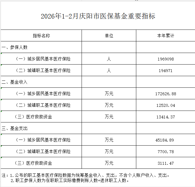 2026年1-2月慶陽市醫(yī)?;鹬匾笜?biāo)