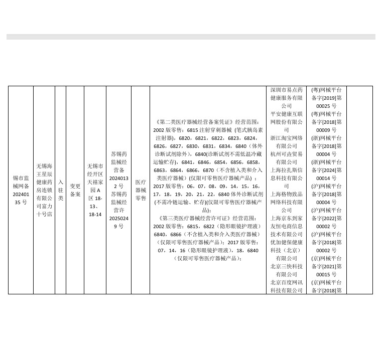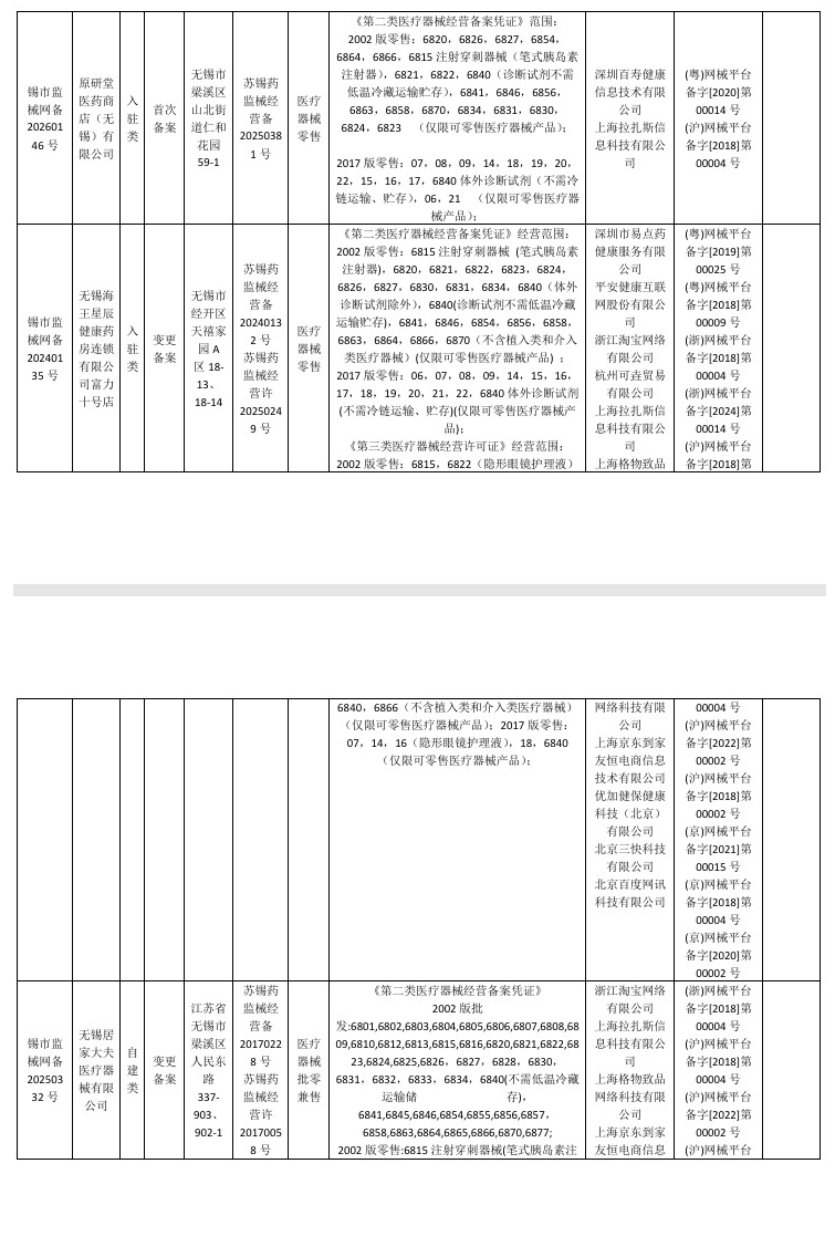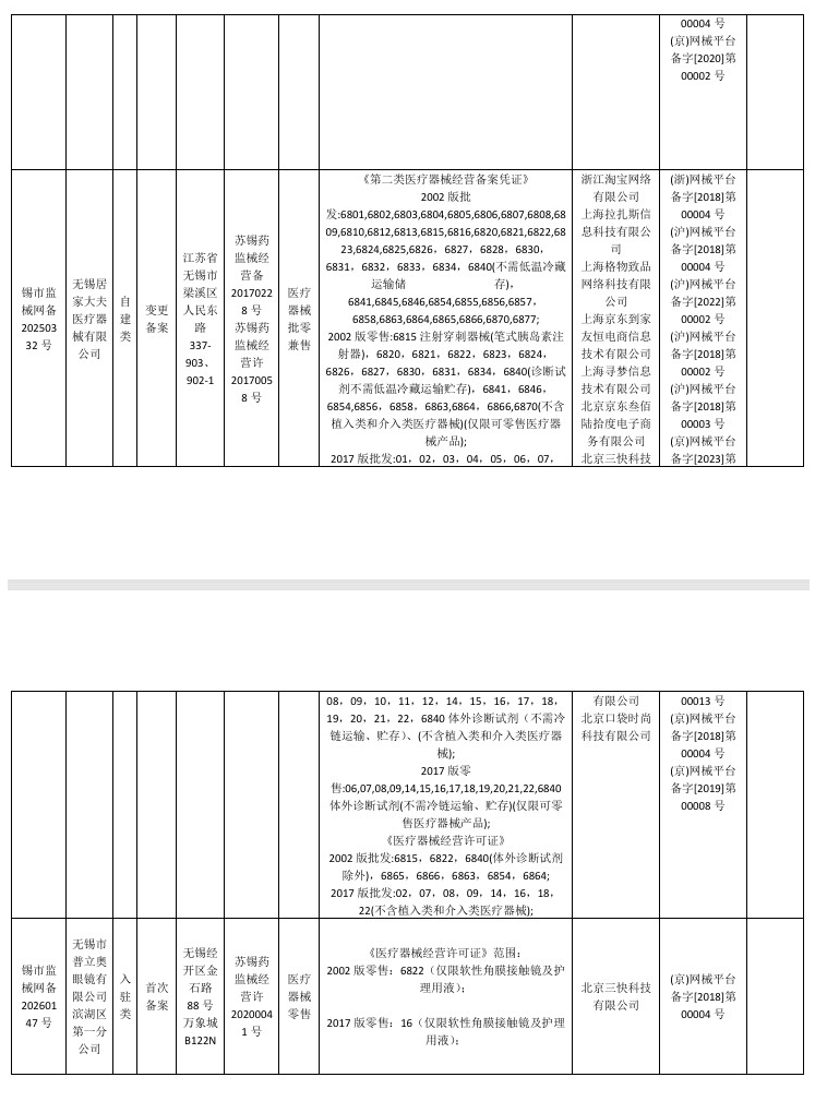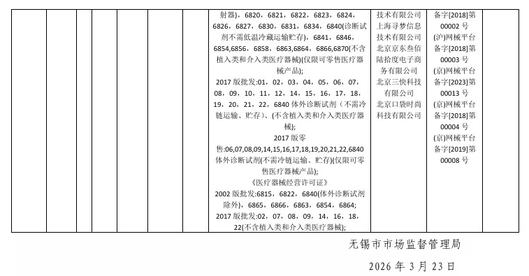 無錫市醫(yī)療器械網(wǎng)絡(luò)銷售告知備案信息公告(20260011號)